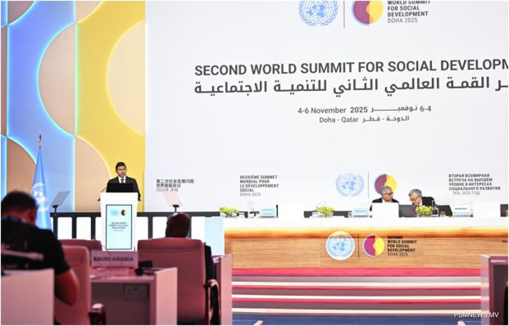 Vice President Hussain Mohamed Latheef concluded his official visit to Doha, Qatar, after attending the Second World Summit for Social Development (WSSD2), held from 4 to 6 November. In his address, he reaffirmed the Maldives’ commitment to advancing international social development goals through a framework grounded in inclusivity, equality, and resilience.