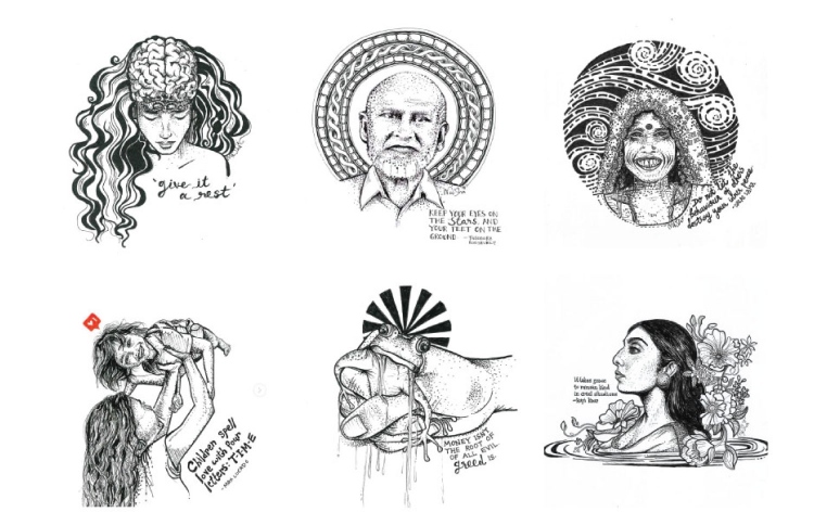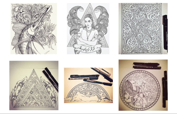 Crafting sketches that often incorporate multiple elements, Fyzan’s Inktober seamlessly switches between fine intricacies like that of Indian mandalas to humanoid portraits that subtly colour wafts of personality, even playing around with minimalistic line drawings. It may surprise you to know this creative soul is the grandson of a Maldivian art legend, but while the talent is perhaps carried in the genes, these art pieces come together in a style far too unique to be anything but his own.
