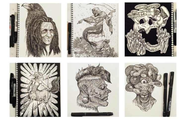 A selection of creations made by artist @bluecrayon for Inktober. IMAGE: INSTAGRAM / THE EDITION9. Jauna Nafiz @jauteez