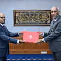 The oath of office was administered by Supreme Court Justice, Honourable Dr Mohamed Ibrahim, after which the Minister signed the declaration of oath.