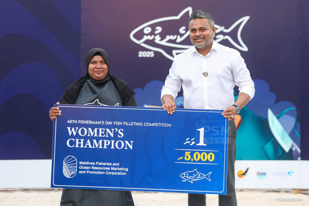 The event featured separate categories for men and women, with winners selected for first, second, and third places in each section. Minister of Fisheries and Ocean Resources Ahmed Shiyam presented awards to the winners.