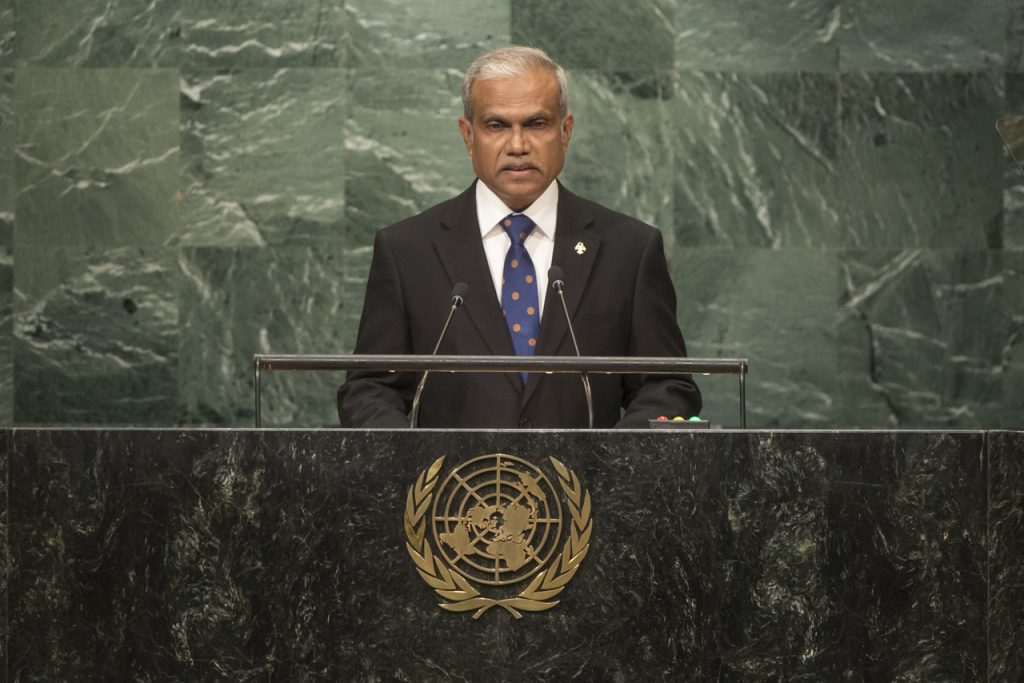 Maldives foreign minister Dr Mohamed Asim pictured during his address to the 71st UN General Assembly in New York on Saturday. PHOTO/UN