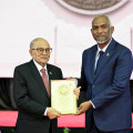 President Gayoom, who also holds the Grand Order of the Distinguished Rule of Ghaazee (GODRG), was honoured for his role as president and commander-in-chief of the armed forces during the crisis.