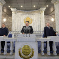 Kim, who presided over the event, called for further strengthening of the country’s nuclear deterrent.