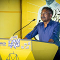 Male City Mayor Adam Azim at the rally held at the MDP campaign camp in support of him on January 14, 2026. (Sun Photo/Hassan Hafiz)