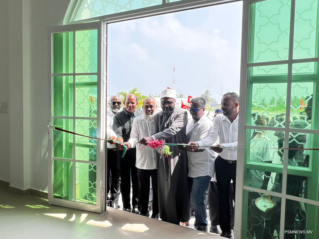 The Minister of Islamic Affairs, Dr Mohamed Shaheem Ali Saeed, on Friday inaugurated the Shaheed Umar Ahmed Islamic Centre, a major new institution in Dhidhdhoo, Haa Alifu Atoll. The opening, timed to coincide with Friday prayer, commemorates Shaheed Umar Ahmed, a native of the island who was martyred on 3 November 1988 while serving at the Islamic Centre in Malé during a mercenary assault on the Maldivian capital.