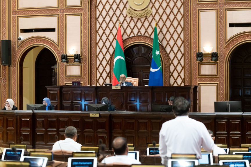 Speaker Abdul Raheem Abdulla presides over a parliamentary sitting on October 15, 2025. (Photo/People's Majlis)
