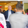 He received a warm welcome upon exiting VIA’s VIP terminal, which included a cultural procession in his honor. Senior officials from the sports sector were at the terminal to receive him.