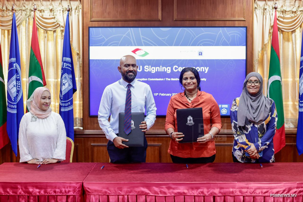 The agreement was formalised during a ceremony held at the MNU campus. President of the ACC, Adam Shamil, signed on behalf of the Commission, while Vice Chancellor Dr Aishath Shehenaz Adam signed for MNU, marking a milestone in institutional collaboration for ethical governance.