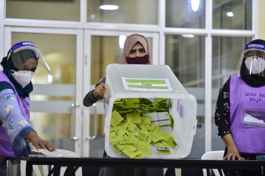 Elections Commission (EC) staff during the election: EC seeks over 260 staff for local council and WDC elections. (Sun Photo/Mohamed Shaathiu Abdulla)