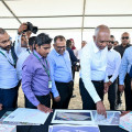 President Dr Mohamed Muizzu on Monday inspected the progress of the ongoing land reclamation works. He was accompanied by Cabinet Ministers and senior officials from the Housing Development Corporation (HDC) and Maldives Airports Company Limited (MACL). During the visit, the President inquired regarding the project and received briefings from relevant authorities.
