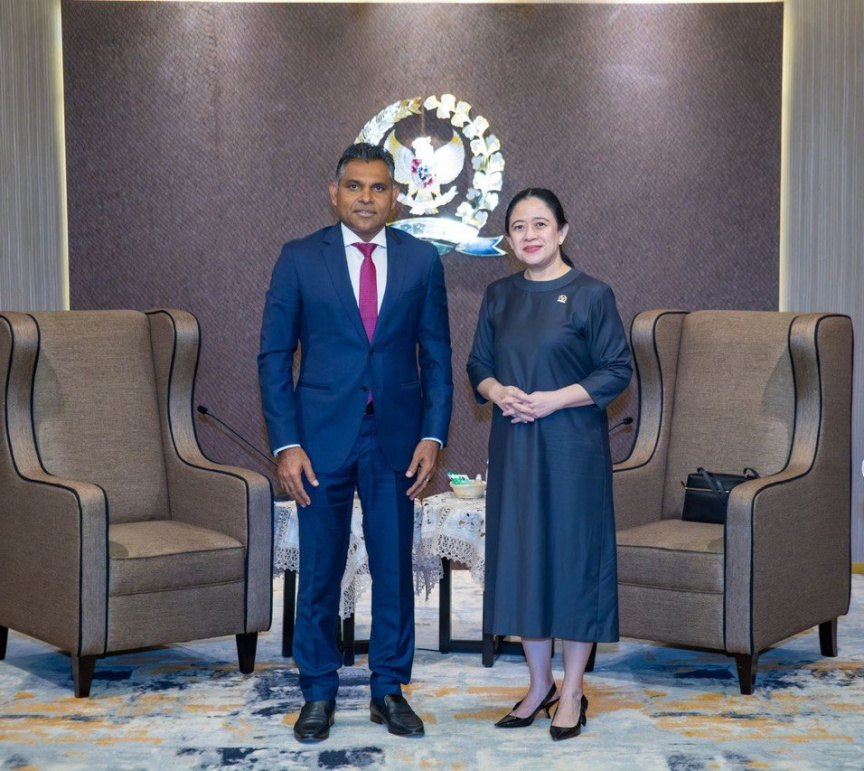 Former Vice President Faisal Naseem visited the Indonesian Parliament on Monday at the invitation of Speaker Puan Maharani.