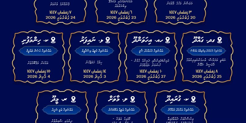 The first forum in the atolls will be held on 3 Ramadan (February 20, 2026) in Th. Dhiyamigili. This will be followed by forums in GDh. Thinadhoo, GDh. Madaveli, and GDh. Gadhdhoo. The forum in HA. Ihavandhoo is scheduled for 10 Ramadan (February 27, 2026). Additionally, forums are scheduled to be held in Lh. Naifaru, K. Himmafushi, K. Guraidhoo, L. Maavah, and R. Meedhoo.