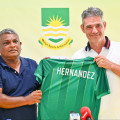 Maziya's new coach Luisma Hernandez being handed his jersey -- Photo: Fayaz Moosa