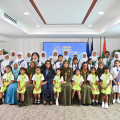 Upon arrival, the First Lady and the reception’s guest of honour, the Asia Pacific Regional Committee Chair of the World Association of Girl Guides and Girl Scouts (WAGGGS), were accorded a guard of honour.