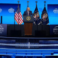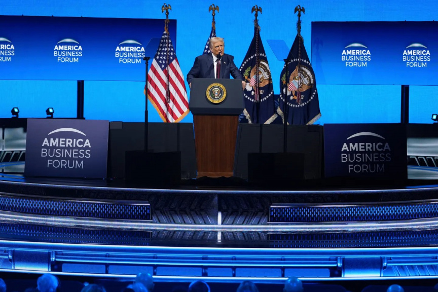 The speech marked the first anniversary of Trump's election victory against Democrat Kamala Harris.