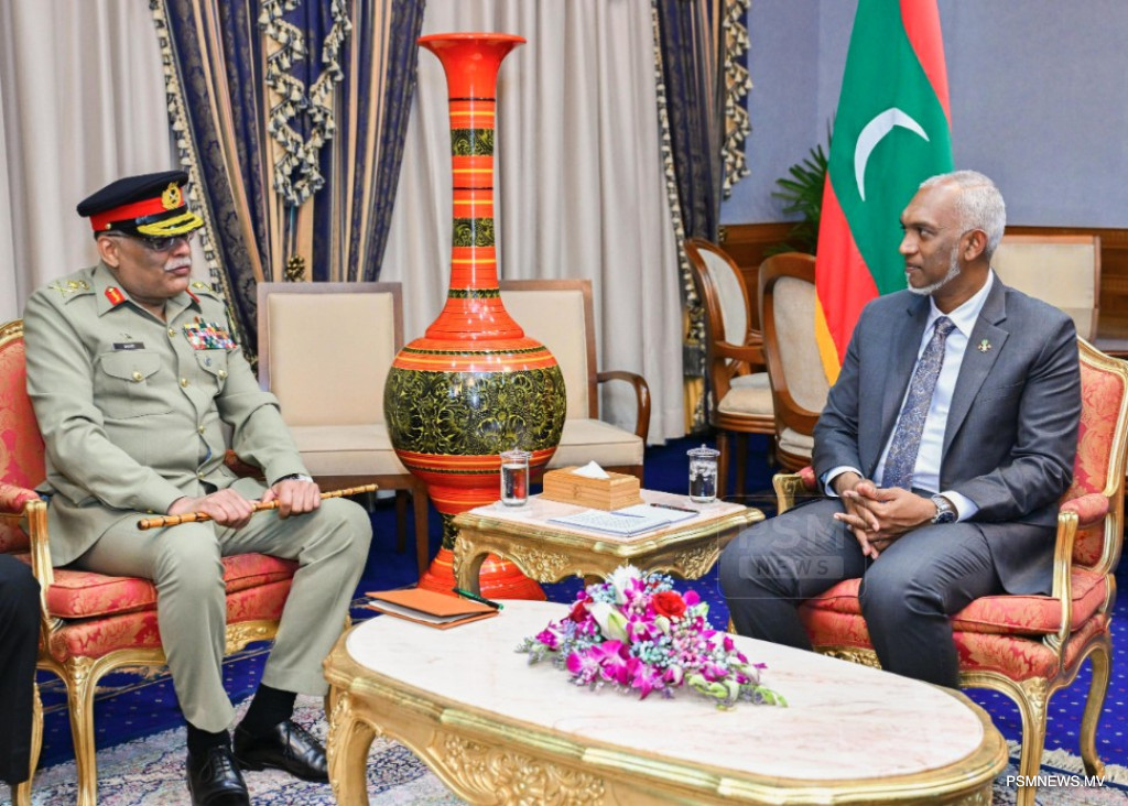 The Chairman of the Joint Chiefs of Staff Committee of Pakistan, General Sahir Shamshad Mirza, paid a courtesy call on President Dr Mohamed Muizzu on Thursday.