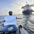 Protest near dredger over dredging near islands for Rasmale’ reclamation