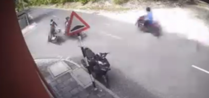 CCTV footage of the accident has circulated on social media, showing one motorcycle waiting at the curb while another approaches at high speed, appearing to lose control before crashing into the stationary vehicle. The rider of the speeding motorcycle swerved left and disappeared from view.