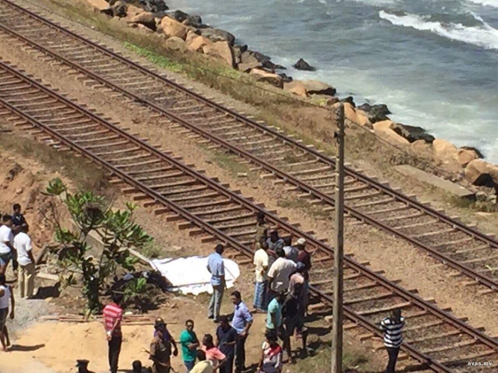 The deceased is Izham Mohamed (21 years old) of GDh. Madaveli. The accident occurred this morning just in front of Colombo Hotel Ocean. Sources say that Izham, a student at Maldives National University, was in Sri Lanka for the holidays. Videos on Facebook show that Izham's body had been moved from the railway tracks and covered with a white sheet.
