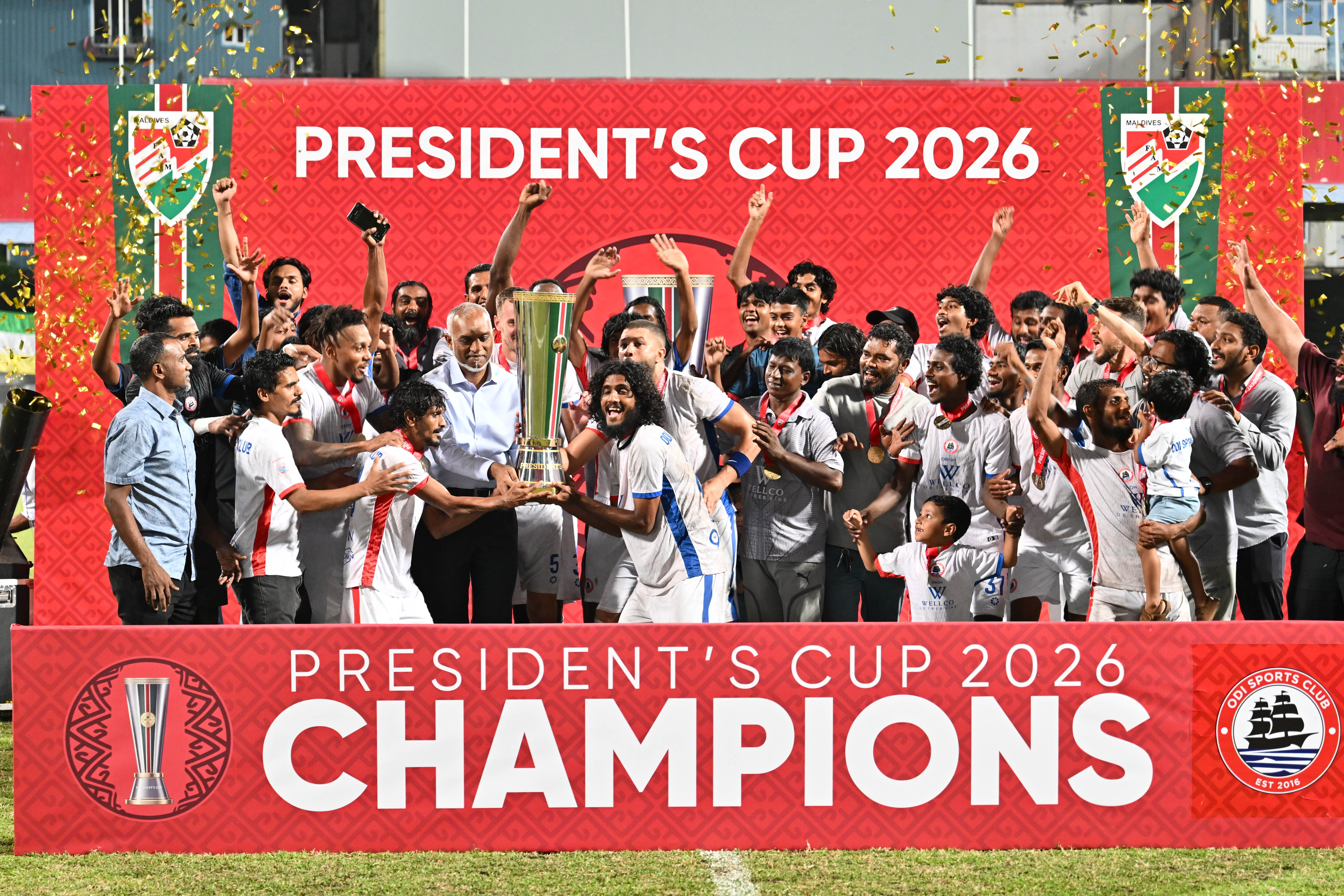 President Dr Mohamed Muizzu attended the final match and closing ceremony of the President’s Cup football tournament, held this evening at the National Stadium.