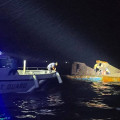 Almaak Fiya, a landing craft headed from Male' City to K. Eriyadhoo, overturns on October 16, 2025. (Photo/Marine Police)