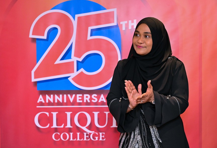At Saturday’s ceremony, Sajidha presented the Clique College Scholarship, valued at MVR 100,000, to the recipient.