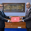 Uz Hassan Shafeeu took the oath of office and signed the declaration of membership at a ceremony held today at the President’s Office. The oath was administered by Justice Uz Mohamed Saleem of the Supreme Court of the Maldives. Following the administration of the oath, President Dr Muizzu formally presented the letter of appointment.