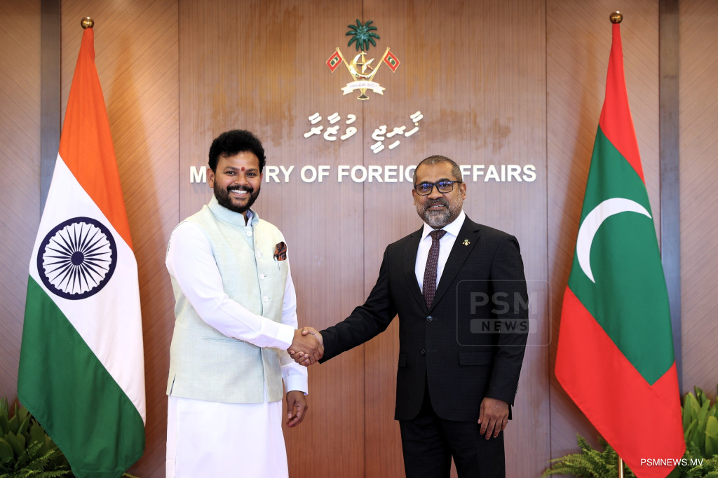 Minister of Foreign Affairs Dr Abdulla Khaleel and India’s Special Envoy and Minister of Civil Aviation, Kinjarapu Ram Mohan Naidu, met at the Ministry of Foreign Affairs on Sunday, reaffirming both countries’ commitment to strengthening bilateral relations, enhancing connectivity, and advancing shared development initiatives.