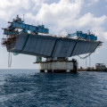 Thilamale' bridge construction work ongoing: Afcons targeting to link Male'-Vilimale' segment of the bridge by the end of October. (Sun Photo/Mohamed Shaan)