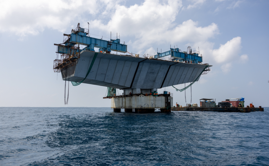 The seven-kilometer bridge linking Male’, Vilimale’, Thilafushi and Gulhifalhu features the tallest precast segments to be produced in the world at 8.2 meters high and 25.3 meters wide.