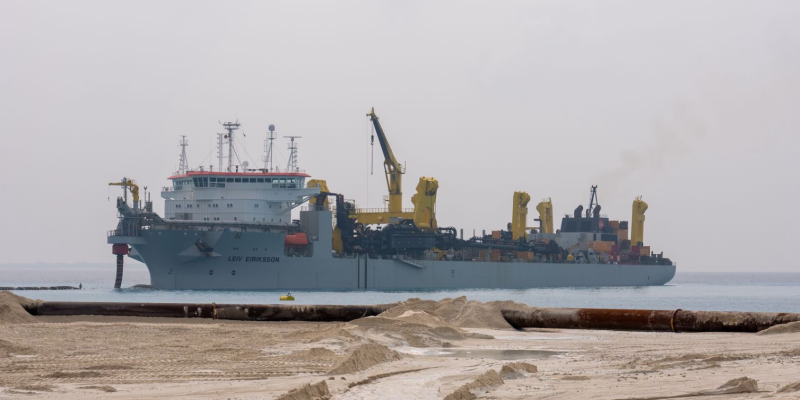 The dredger being utilized for this reclamation project is noted as one of the largest in the world. The vessel, a Trailing Suction Hopper Dredger named *Leiv Eiriksson*, has a capacity of 46,000 cubic meters. This is the third dredger brought in by the government to expedite land reclamation efforts.
