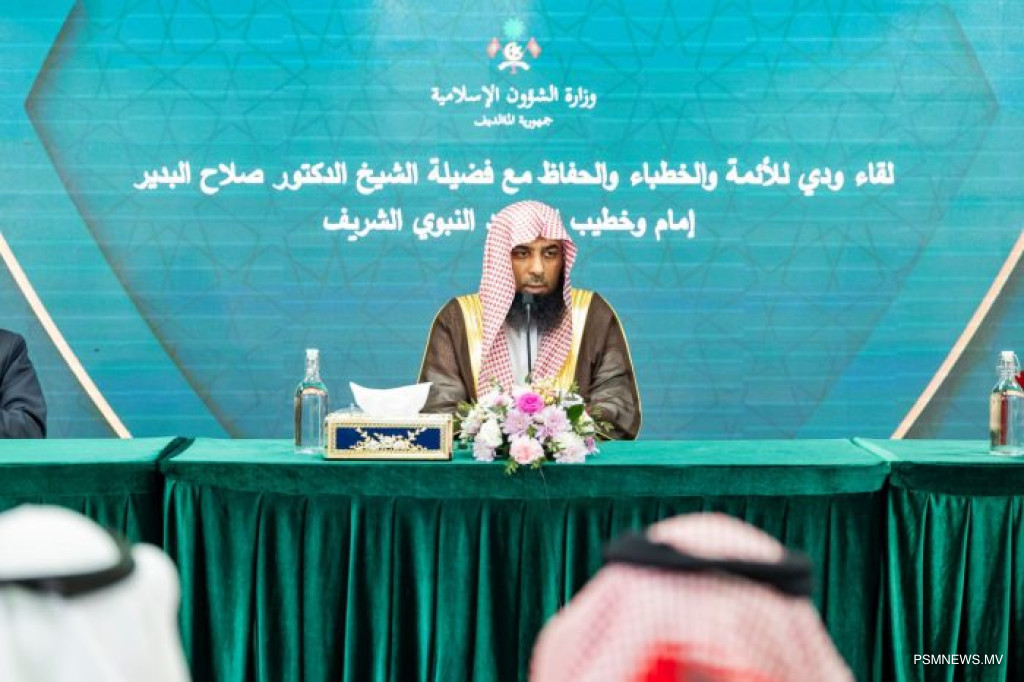 Imams should be role models for the society, Masjid al-Nabawi’s Imam, Dr Sheikh Salah Al Budair has advised. He made the remarks while addressing during a meeting held with young khathibs and imams of the Maldives, as part of his ongoing official visit to the archipelago.