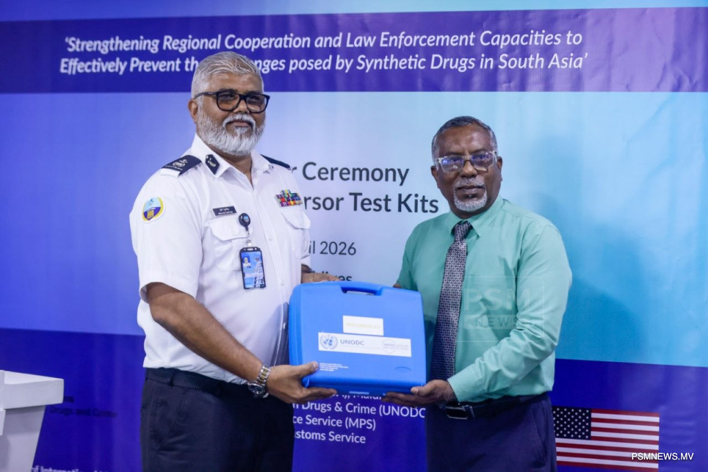 In a significant move to curb the trafficking and spread of narcotics in the Maldives, drug testing kits donated by the United Nations Office on Drugs and Crime (UNODC) have been formally handed over to the Maldives Customs Service and the Maldives Police Service (MPS).