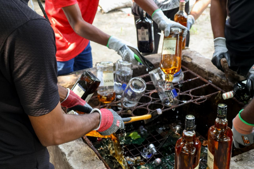 According to Maldives Police Service, the items were part of cases that had reached the analysis stage and were confiscated by Drug Enforcement, Tourist Police and Hulhumale' Police. The destruction was carried out under the supervision of a committee formed under the Rules of Procedure for the Destruction of Liquor and Liquor‑related Seized Items.
