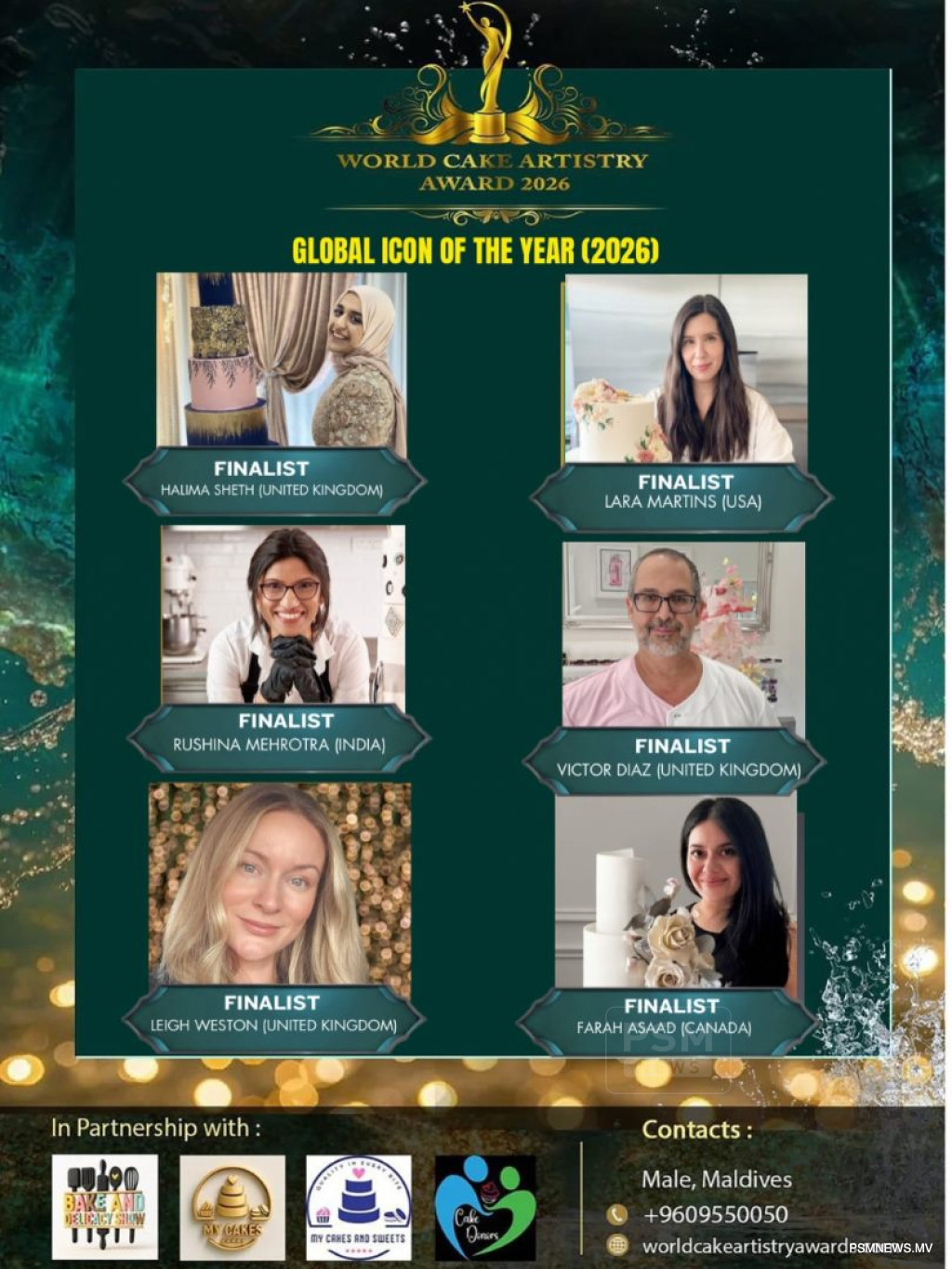 The international award ceremony will be held on 12 February. Privately organised by experienced local cake artist Mujuthaba Abdulla, it brings together cake designers from 38 countries across the world.