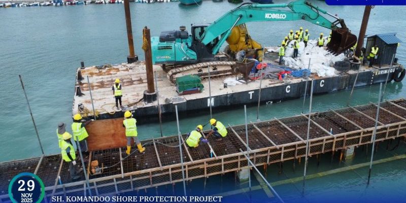 The project, launched in 2023 to ease Komandoo’s long-standing land scarcity, includes developing a 200-meter causeway between the two islands. MTCC reports that most of the concrete works for the causeway are already finished, alongside ongoing efforts to fortify the reclaimed area.