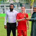 Following the match, the First Lady presented the Player of the Match award, conferred by the Football Association of Maldives, to the standout player.
