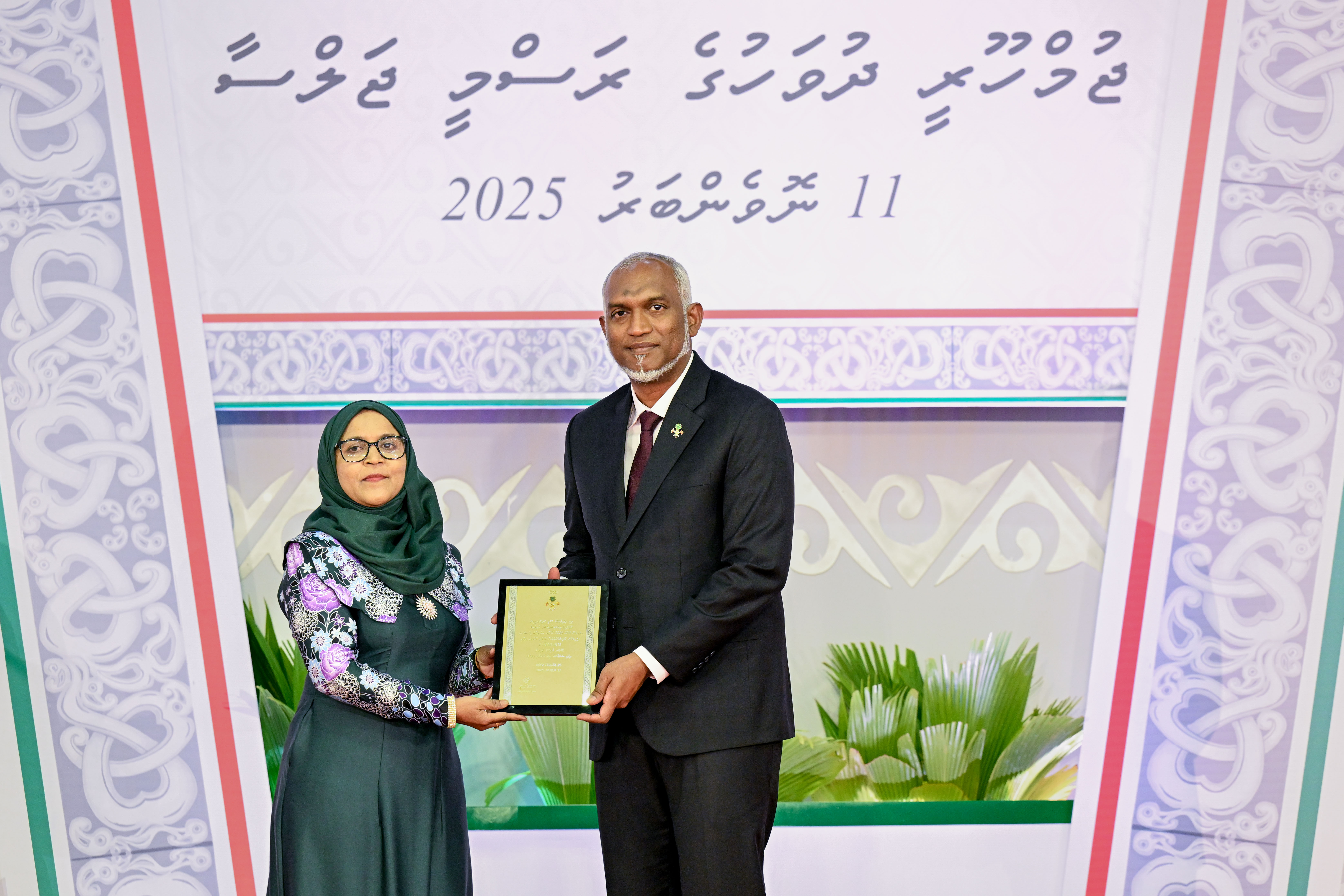 Dr Aminath Zahir received this honour in recognition of her groundbreaking achievement in attaining the first doctorate in Dhivehi within the field of Applied Linguistics from Maldives National University. Her research focuses on identifying strategies for the advancement of the Dhivehi language.