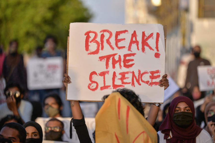 Protesters hold an anti-rape rally in Male' City on June 29, 2020. (File Photo/Sun/Fayaz Moosa)