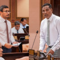 The microphone at the desk of PNC’s parliamentary group leader, Inguraidhoo MP Ibrahim Falah got damaged in the morning, amid heated exchanges that broke out when Islamic Minister Dr. Mohamed Shaheem Ali Saeed blamed the former MDP administration for delay in a project to develop an Islamic center in Addu’s Hithadhoo district.