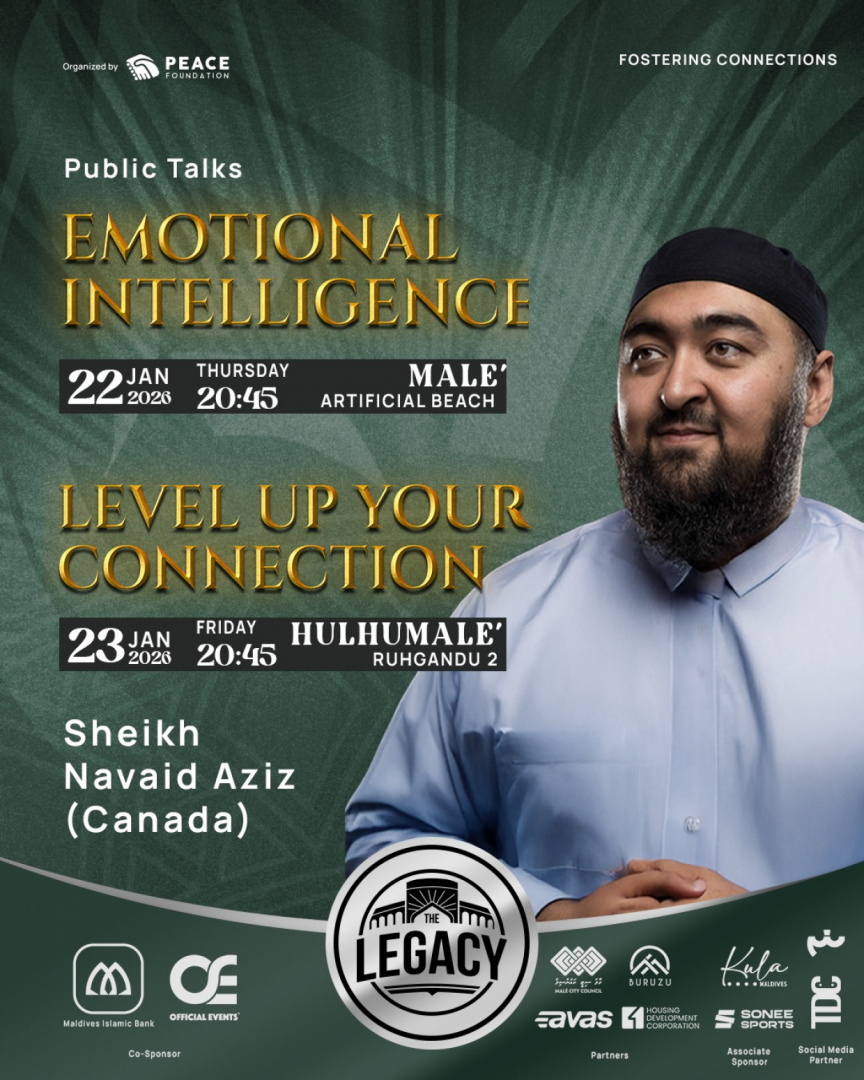 The second lecture, Level Up Your Connection, will take place on Friday night at Hulhumale's Ruhgandu 2. It will focus on strengthening one’s relationship with Allah and unlocking personal potential through spiritual alignment.