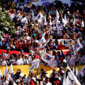 Organised by party officials, pro-government demonstrators gathered early in the day to express defiance and loyalty to the political movement that previously ruled the country.