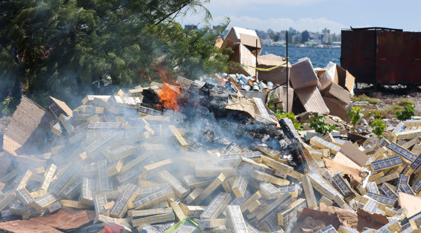 Maldives Customs Service destroyed over 3.1 million illegally imported cigarettes on Sunday.