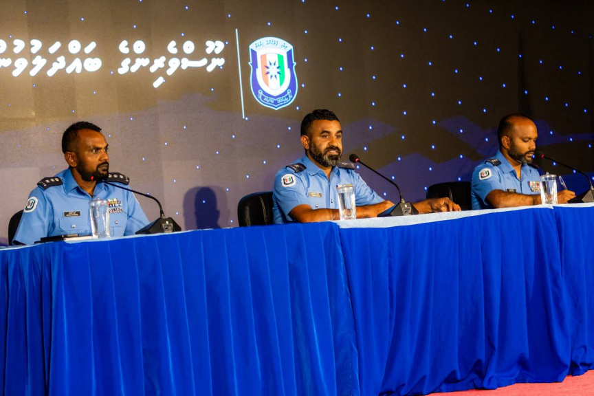 Chief Inspector of Police Ahmed Naif briefs the press on nationwide 'Alimagu' counter-narcotics operation on November 25, 2025. (Sun Photo/Moosa Nadheem)