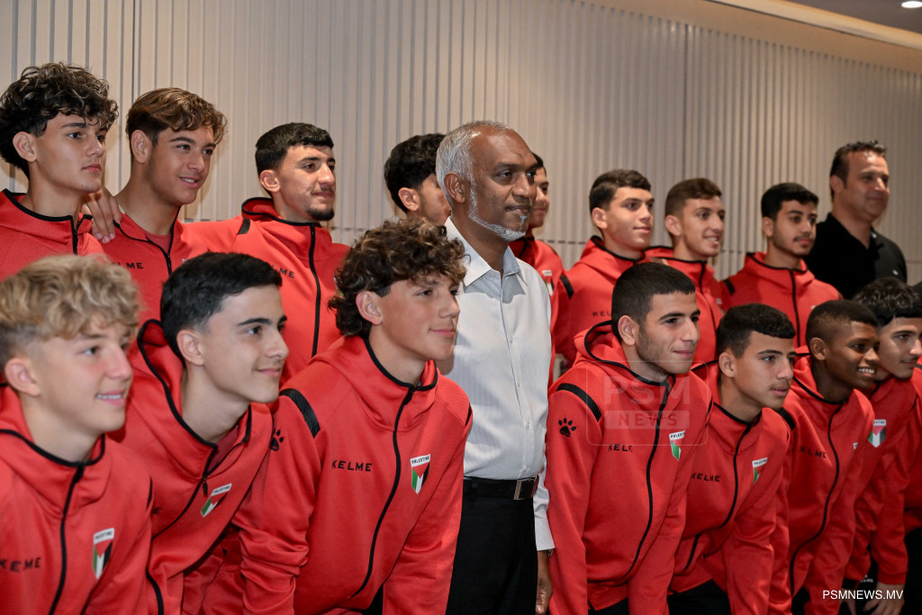 President Dr Mohamed Muizzu hosted a luncheon for the visiting Palestinian Under-17 national football in Hotel Jen on Monday.