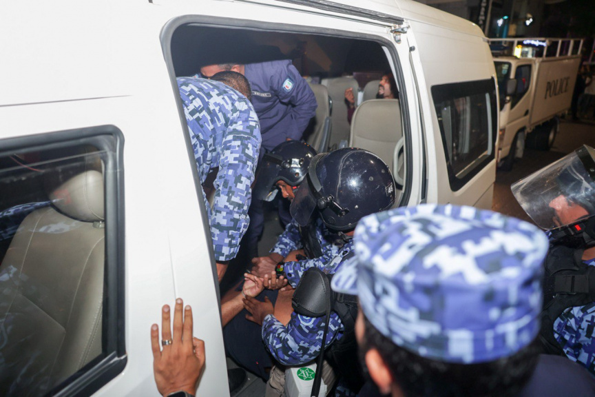 Special Operations (SO) Police prevented protesters from leaving Artificial Beach and heading towards Majeedhee Magu. Clashes subsequently broke out between protesters and police, with officers using pepper spray. Six individuals have been arrested so far.