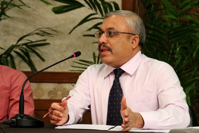 Finance Minister Abdulla Jihad speaking during Economic Council press conference on May 11, 2016. Sun photo: Yoosuf Sofwan Rasheed