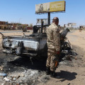 Battles rage elsewhere across the vast country.