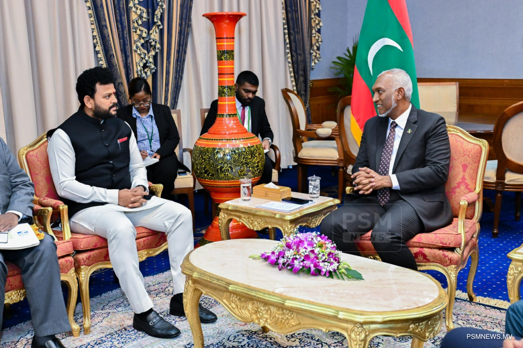 The remarks were delivered during a courtesy call by Kinjarapu Ram Mohan Naidu, India’s Minister of Civil Aviation and Special Envoy of Prime Minister Modi. The meeting was held at the President’s Office in Malé.
